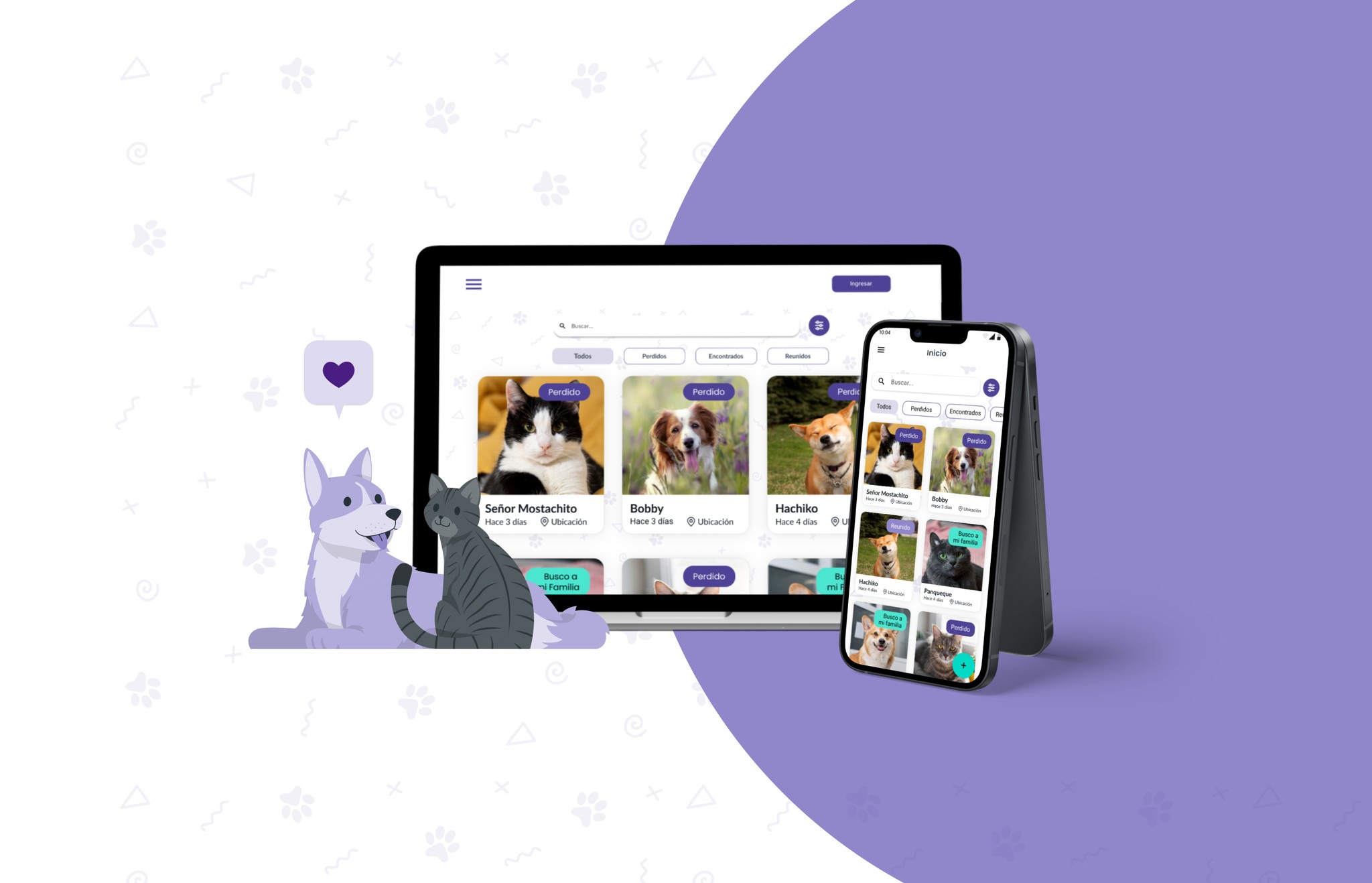 Sitio web dedicado a la búsqueda y reunificación de mascotas perdidas. Ofrece funcionalidades adicionales como la generación de códigos QR y carteles personalizados para facilitar la identificación y el regreso seguro de las mascotas.